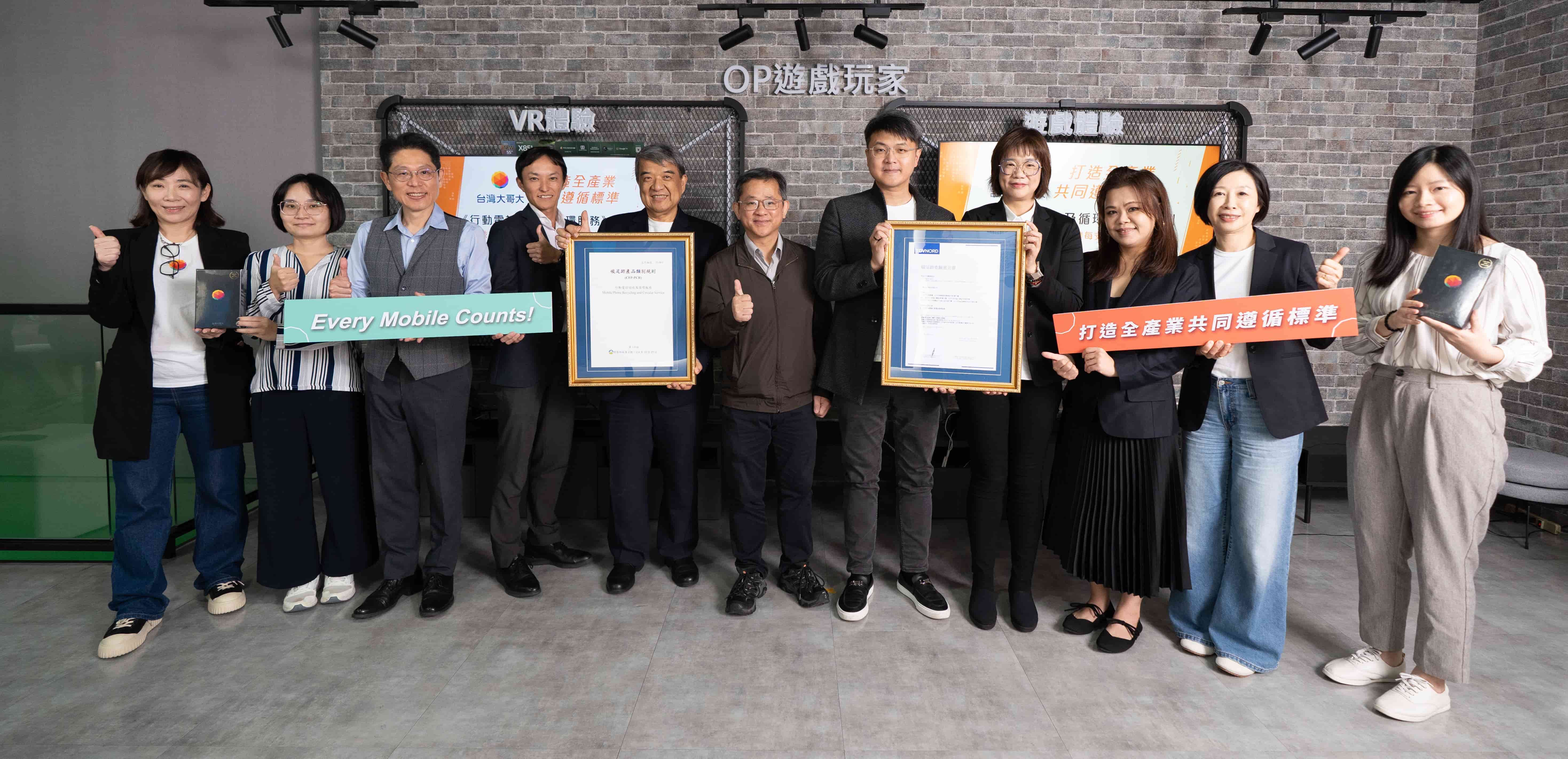 臺北科技大學表示,北科大永續創新評估中心很榮幸與台灣大合作,共同制訂「行動電話回收及循環服務」產品類別指引(PCR)。此PCR的完成,不僅補上國內電信業在服務循環階段碳足跡評估上的制度缺口,也為推動產品回收再利用、建構循環經濟體系提供了科學依據與可行的衡量標準,不僅是技術層面的創新,更是帶動電信產業邁向減碳轉型的重要里程碑。台灣大身為主導者,更以西門町門市率先通過 ISO 14067 產品碳足跡認證,展現企業在永續實踐上的決心與示範影響力。