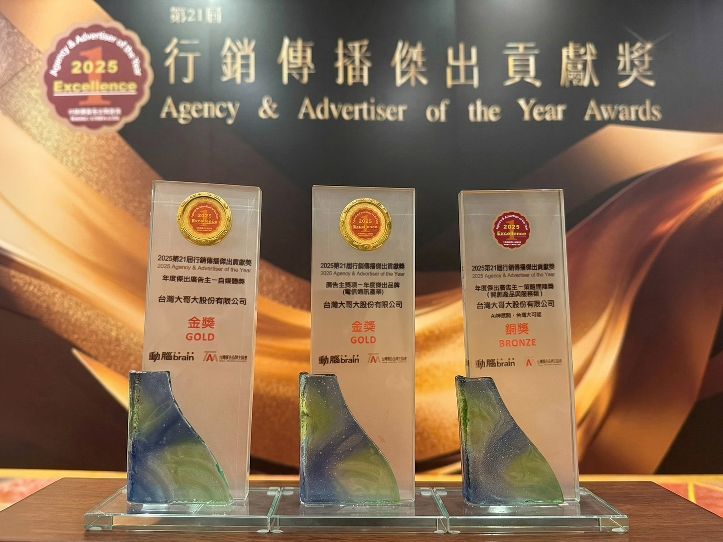 由《動腦雜誌》與台灣廣告主協會(TAA)共同舉辦的年度盛事「2025行銷傳播傑出貢獻獎」日前公布得獎名單,台灣大哥大展現科技電信的品牌創新能量,憑藉全方位 AI 佈局、品牌 IP 角色化的長線策略,創意靈活的全媒體傳播及年輕網感的自媒體經營,一舉橫掃「年度傑出品牌獎」金獎、「年度傑出廣告主:自媒體獎」金獎、「年度傑出廣告主:策略達陣獎(開創產品與服務類)」銅獎肯定。