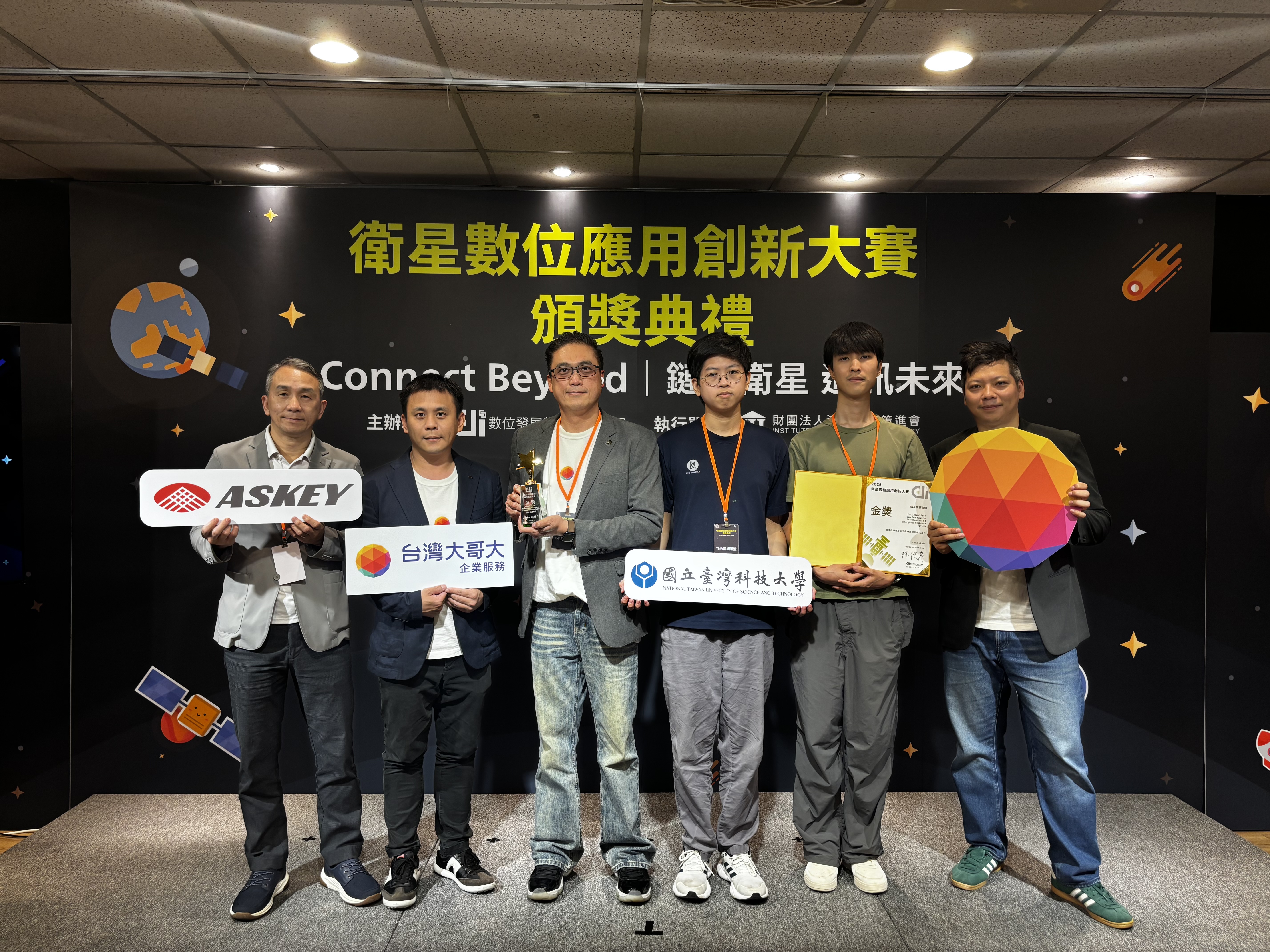 台灣大哥大攜手亞旭電腦與國立臺灣科技大學電子系王瑞堂副教授團隊,將企業實戰經驗與學術創新思維深度融合,加速前瞻衛星技術從概念走向場域實踐。在參與競賽與專案執行的過程中,校園人才得以於第一線接觸通訊應用技術,企業亦能汲取年輕世代的創新靈感,共同為台灣衛星應用產業注入成長動能。